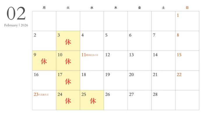 2月のお休みとなります。