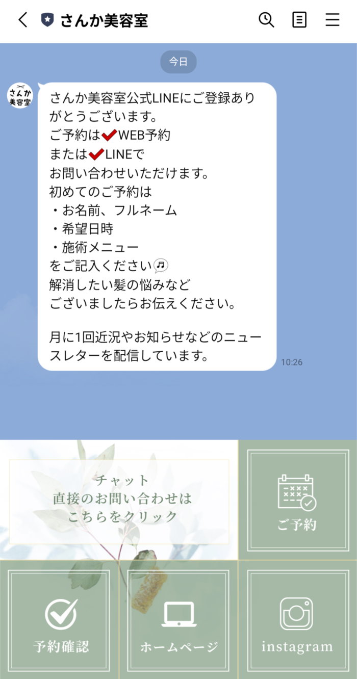 さんか美容室公式のLINE予約